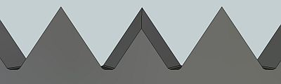 And there in lies the rub. To make a model of a saw filing (the exact shape of the teeth for a given rake, bevel and slope, and the frame of reference in which each rotation is made (more below)) takes me about 20 minutes. In that 20 minutes there are perhaps 400 operations of one kind or another - click, drag, specify size, specify orientation. An error in any step produces an accurate scale model, but not the one intended. If any of the models in these pages seems to be out of whack with your intuition, let me know - you may be right.